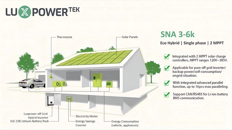সানলিঙ্কের লাক্সপাওয়ার এসএনএ 6000 আপনার বাড়ির জন্য নিরবচ্ছিন্ন শক্তি নিশ্চিত করে, গ্রিডের সাথে সংযুক্ত হোক বা না হোক।